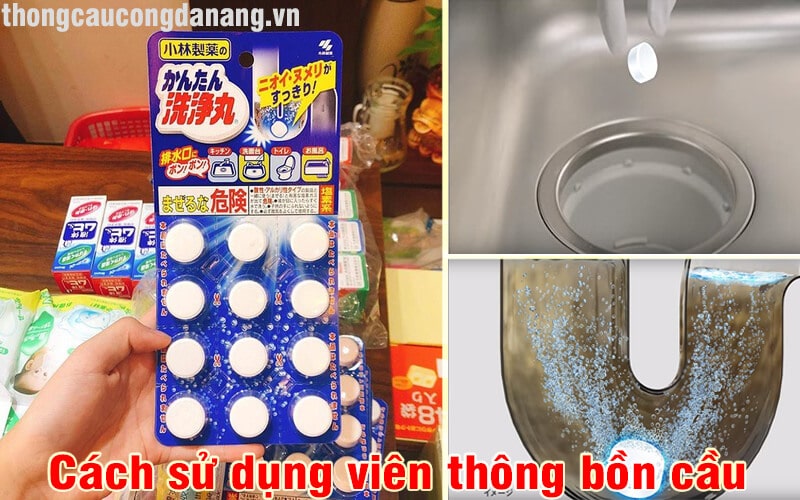 – Đầu tiên thả trực tiếp viên thông cống vào lỗ thoát, sau đó xả nước để nó được hòa tan